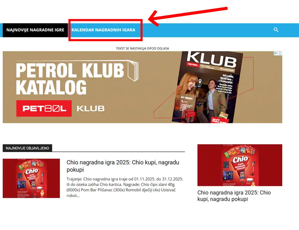 - na desktopu – u gornjem dijelu stranice u glavnom izborniku pronaći ćeš „Kalendar nagradnih igara“