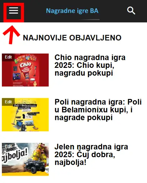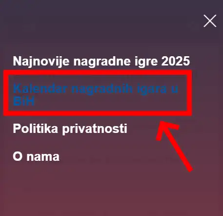- na mobitelu – otvori glavni meni (ikona s tri crtice) i odaberi stavku „Kalendar nagradnih igara“